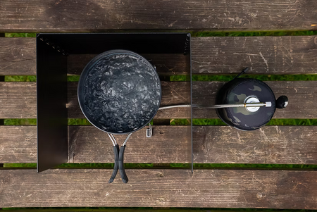 Whether you're creating a full meal or making a brew, The CarpLife Night Forge Stove Shield protects your stove from wind, improving flame stability, reducing cooking times, and conserving fuel.