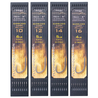Superior Acolyte spade end hooks with their super sharp, long lasting needle points expertly hand tied Acolyte Fluorocarbon. This revolutionary hook length material is super soft, almost invisible and offers excellent hook bait presentation that undoubtedly catches you more fish. The Barbless Carp Pellet are best used with bigger baits like pellets, corn, meat and bunches of maggots for baggin situations and bigger carp.