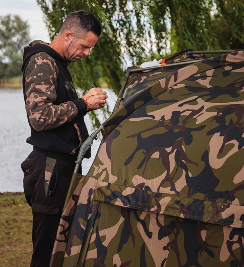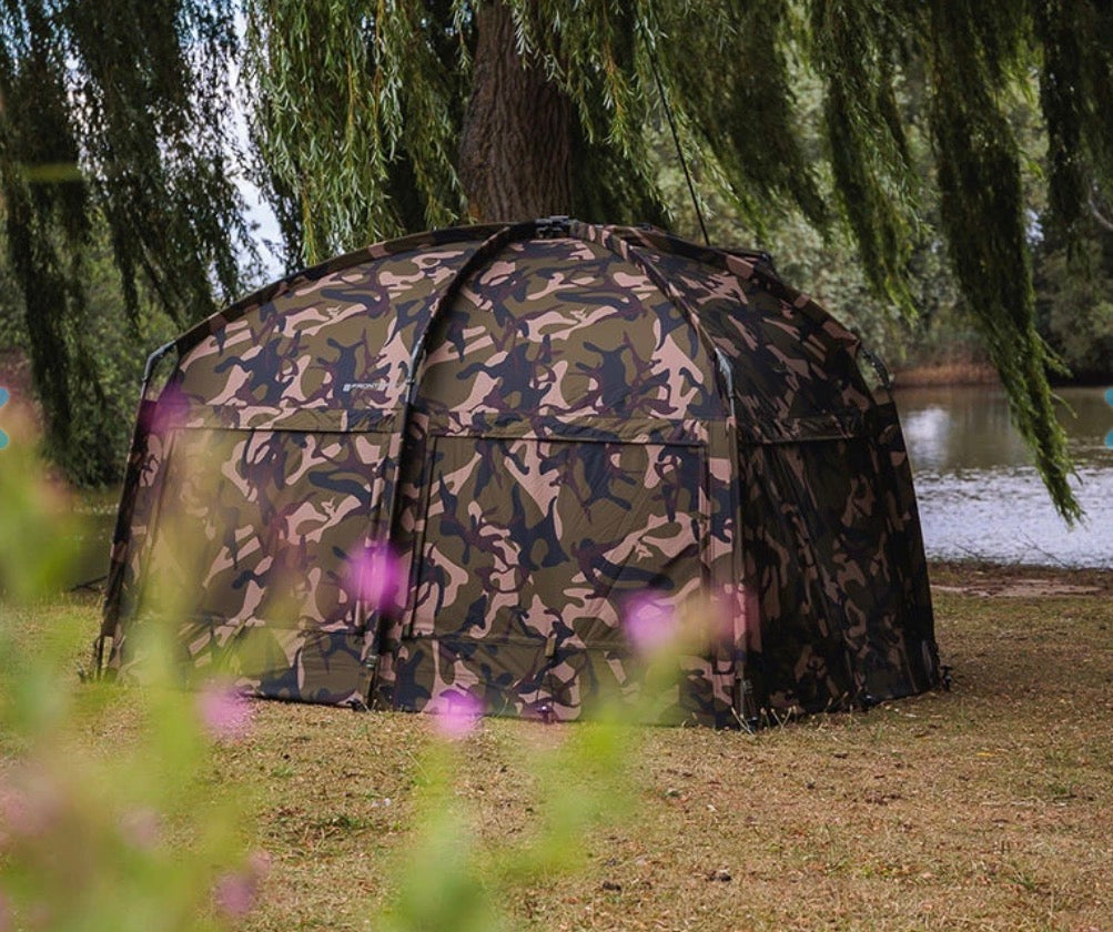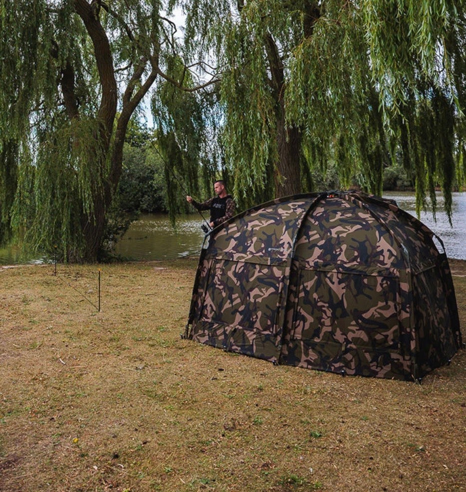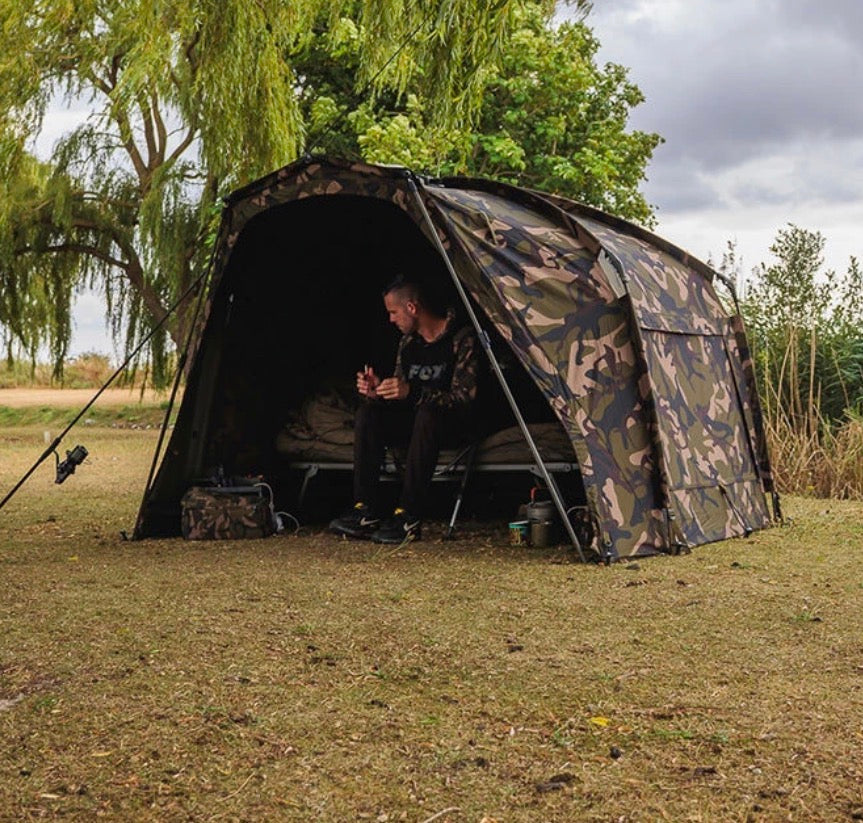 The Fox Frontier II XL Bivvy Camo features an upgraded and improved design with a number of alterations, additions and extras over the original. Constructed from 100% Polyester khaki VenTec fabric with blackout laminate lining, 20,000mm hydrostatic head. With a lightweight aluminium frame with high, flat back design for maximum headroom and usable internal space. Supplied with a solid infill panel with three door options: solid, clear, and camo mozzy mesh, plus mesh panels on both door sides. With a new geared ETS boss that prevents frame collapse during setup. New Spring-loaded hinged, moulded, and keyed elbow joints ensures fast setup, perfect alignment, and fabric protection during assembly. Plus an updated release trigger that ensures quicker pack-down. They also now come supplied with a vapour shield making them ideal for use throughout the year.