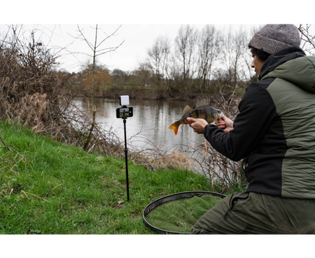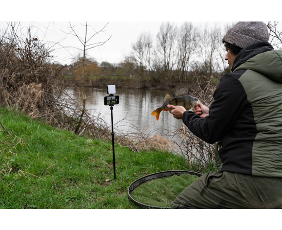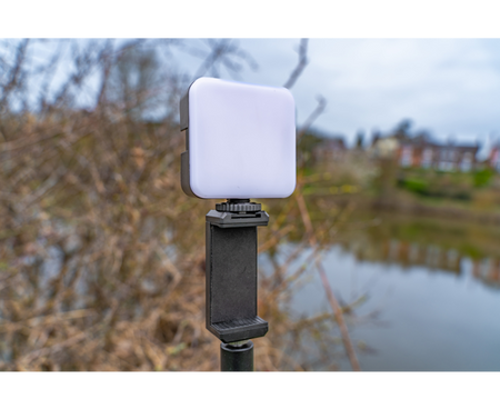 Get better photographs night and day with this compact self take solution. The Self Take Station provides a bright, adjustable light connected to a mobile phone holder. This can be used with a camera tripod, or you can use the designated adaptor to attach the Self Take Station to a bankstick. Get better photographs night and day with this compact self take solution. Adaptor has 1/4" to 3/8" threads. Adjustable phone holder can be used in portrait or landscape mode. Powered with AA batteries (not included).