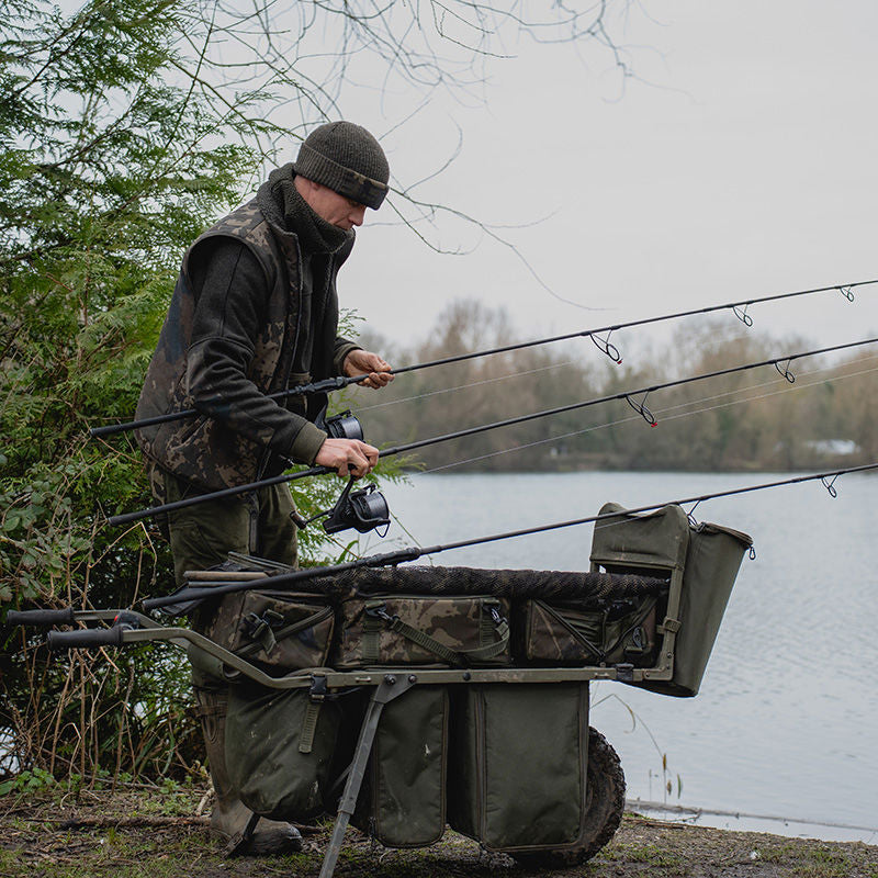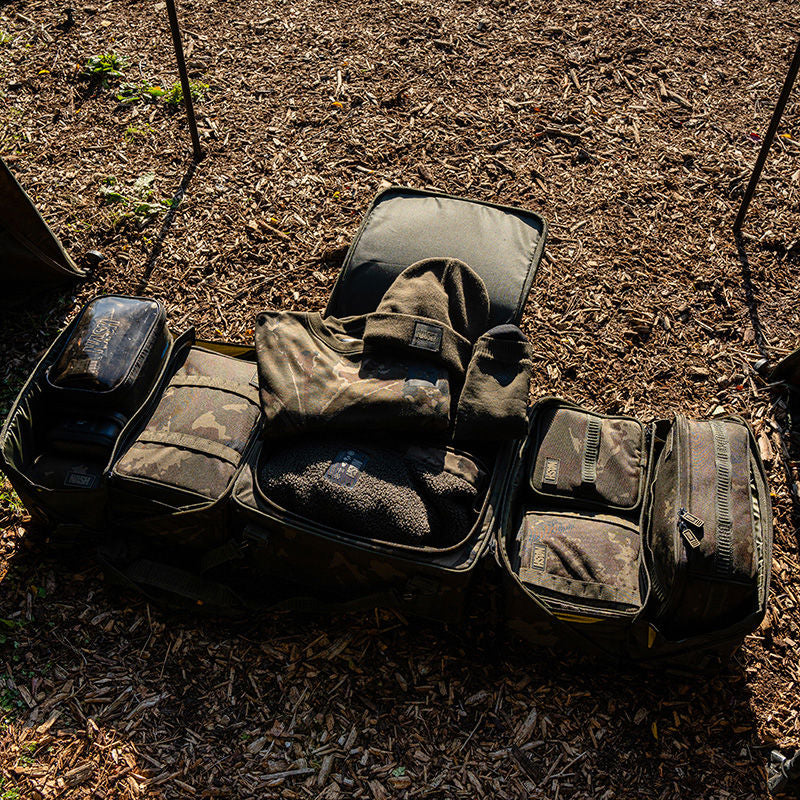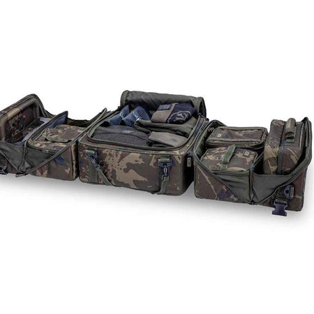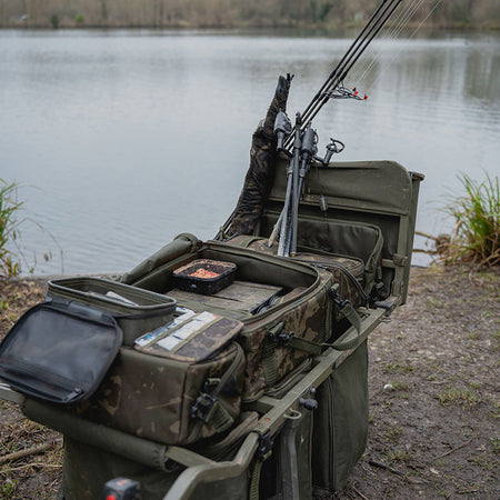 The Nash Subterfuge Cube Carryall 50L features an innovative three element fold out carryall with a base unit and top compartments can all be separated and used independently. Once fully opened out, you can easily access the compartments you need, or remove one or both of the half size compartments completely. The unique angled zip access allows the half size compartments to be folded out to give you open topped organiser work trays where all the contents are visible and instantly to hand. A ideal luggage solution for fishing from a loaded barrow.