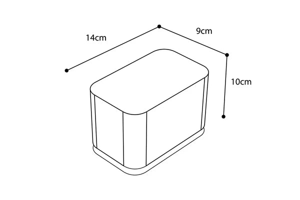 DIMENSIONS 8cm (H) x 14cm (W) x 9cm (D)