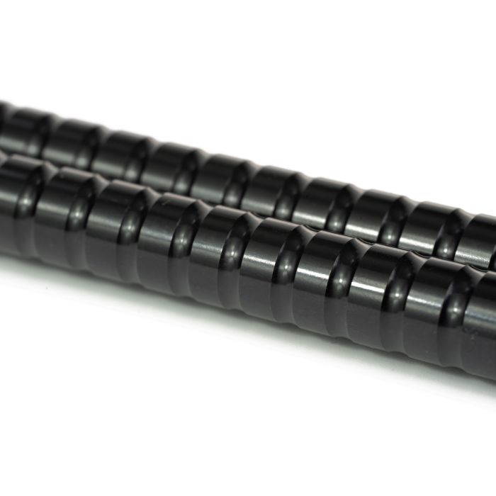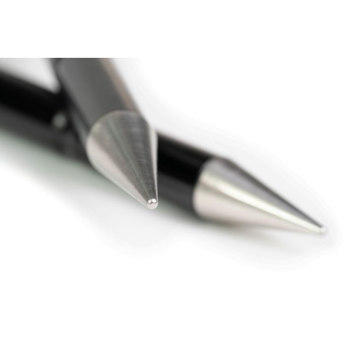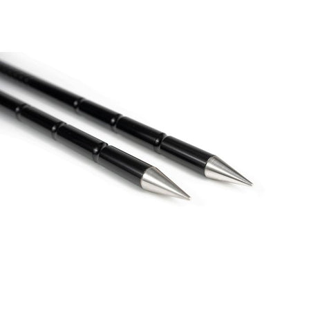 The anodised aluminium body features line-friendly retaining grooves, offering plenty of secure locations to evenly and neatly ‘wrap’ your line around without slipping. Precision-machined with a smooth profile, the line freely peels back off again once wound in. Three larger grooves towards the base of the sticks provide locations to secure the measuring cord, depending on the depth the stick is inserted into the ground. The ground spike is crafted from stainless steel, far denser than the lightweight aluminium body, to increase the strength of the stick and optimise penetration, allowing the hardened point to be driven easily into the ground.