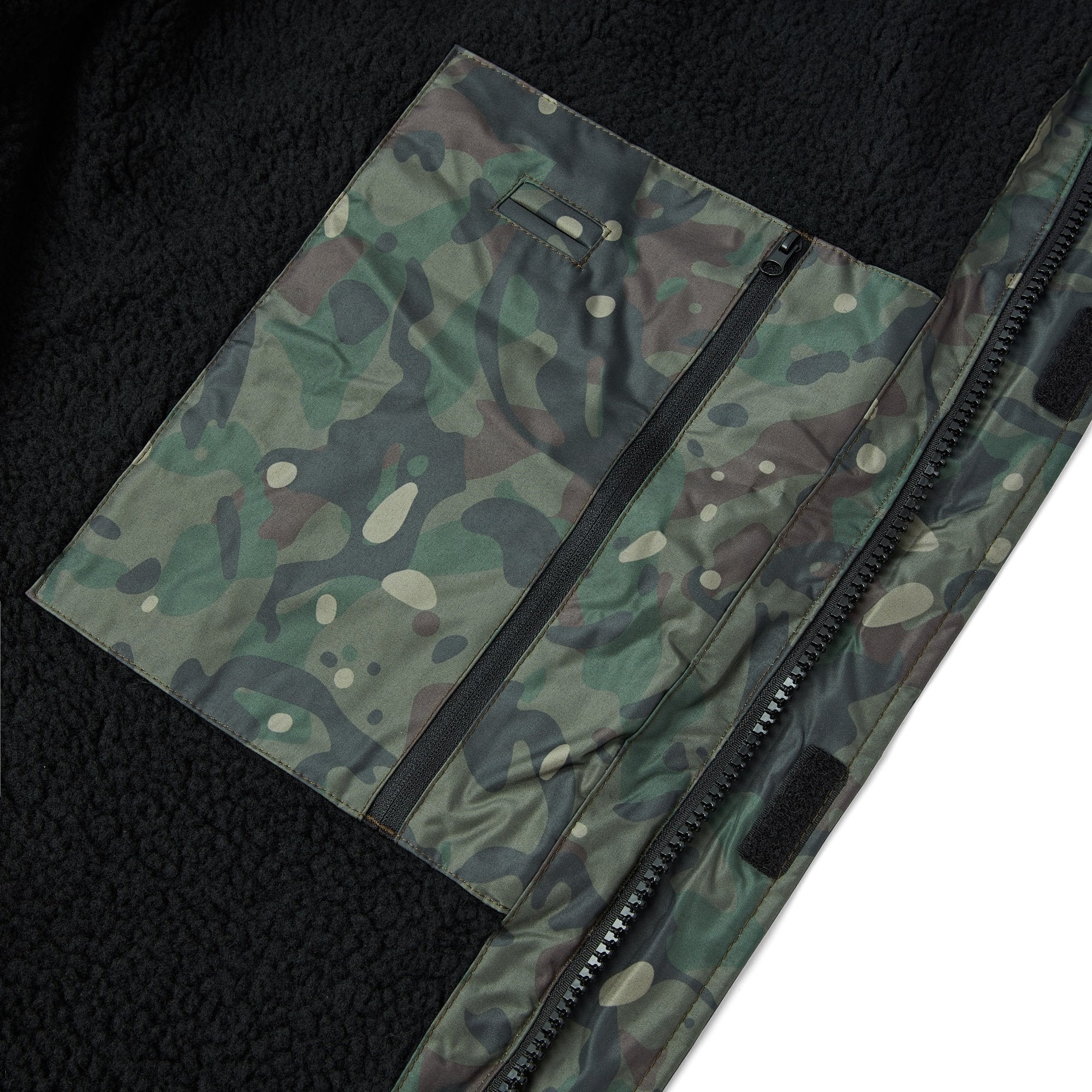 The Trakker CR Camo Robe is crafted from a highly waterproof 5,000mm hydrostatic head outer with fully taped seams; this robe ensures maximum protection against the elements. Zipped fleece-lined hand warmer pockets and the super thick sherpa fleece lining provide exceptional insulation. The Sherpa fleece-lined hood offers additional warmth and protection, while adjustable cuffs ensure a snug and comfortable fit.